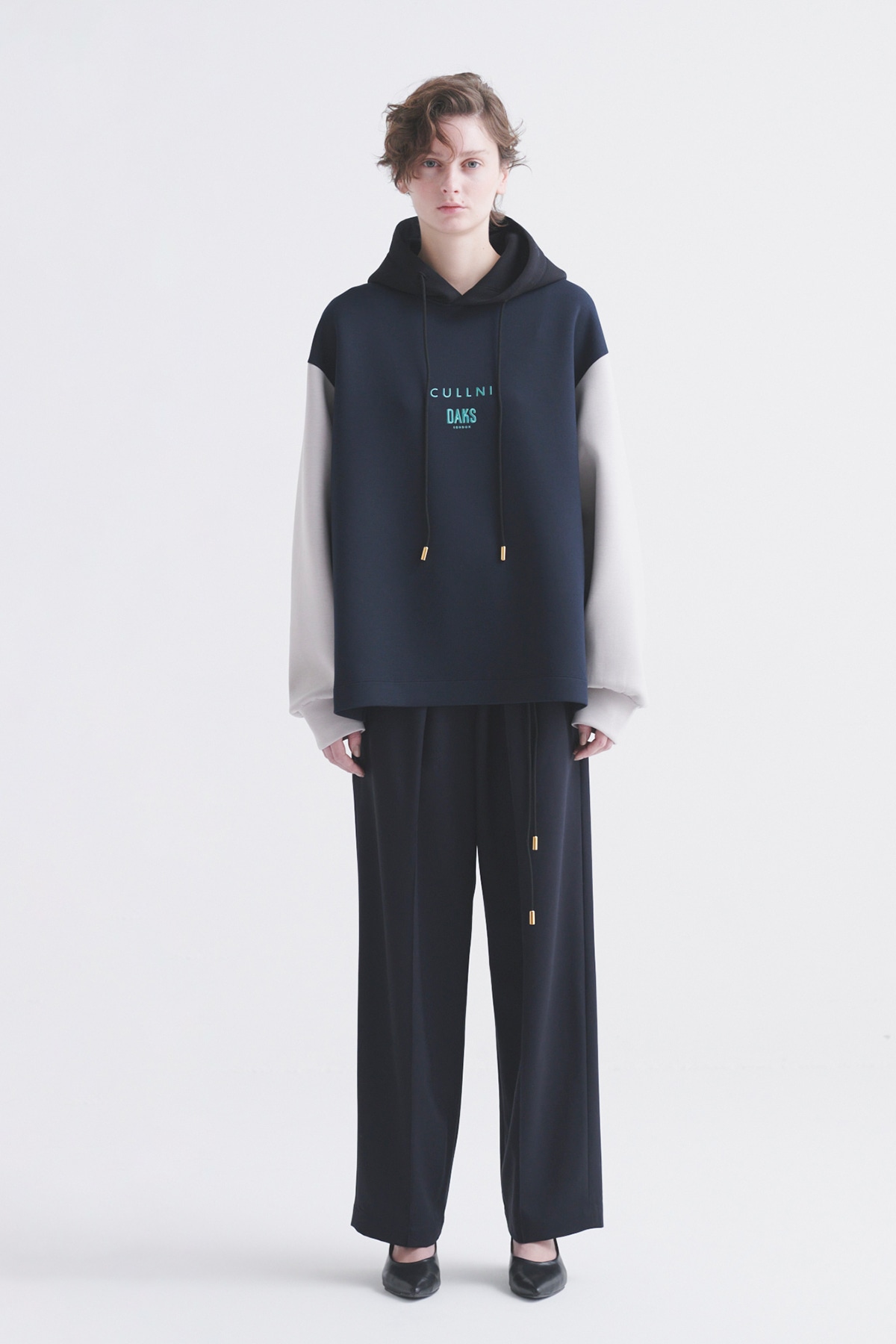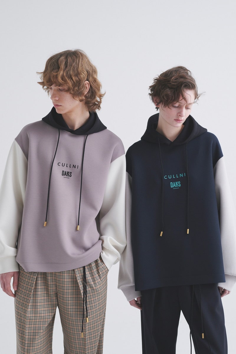 DAKS LONDONとCULLNIのコラボレーションによる、上質で現代的なプルオーバーフーディー。