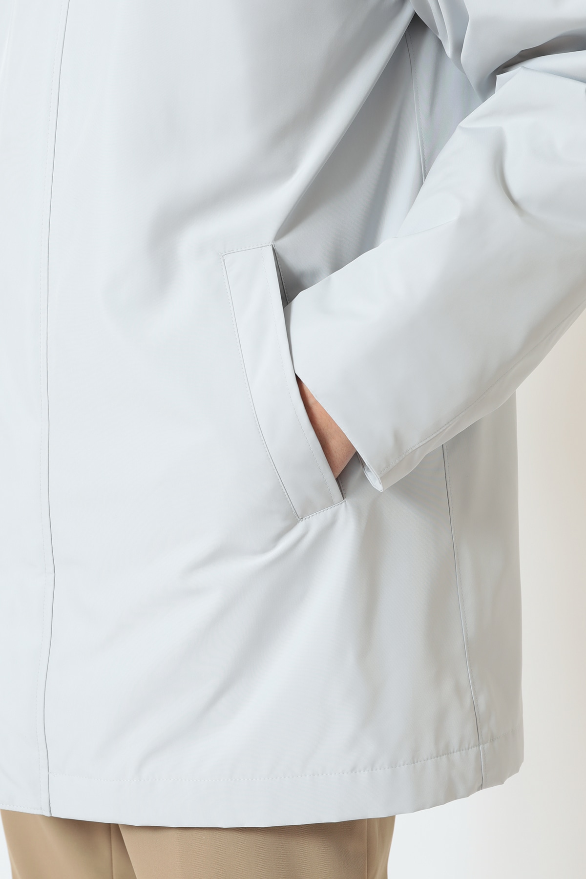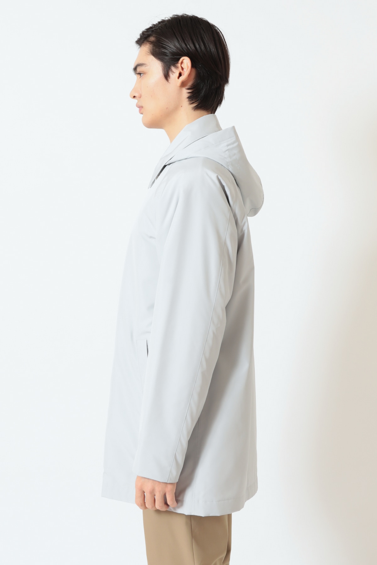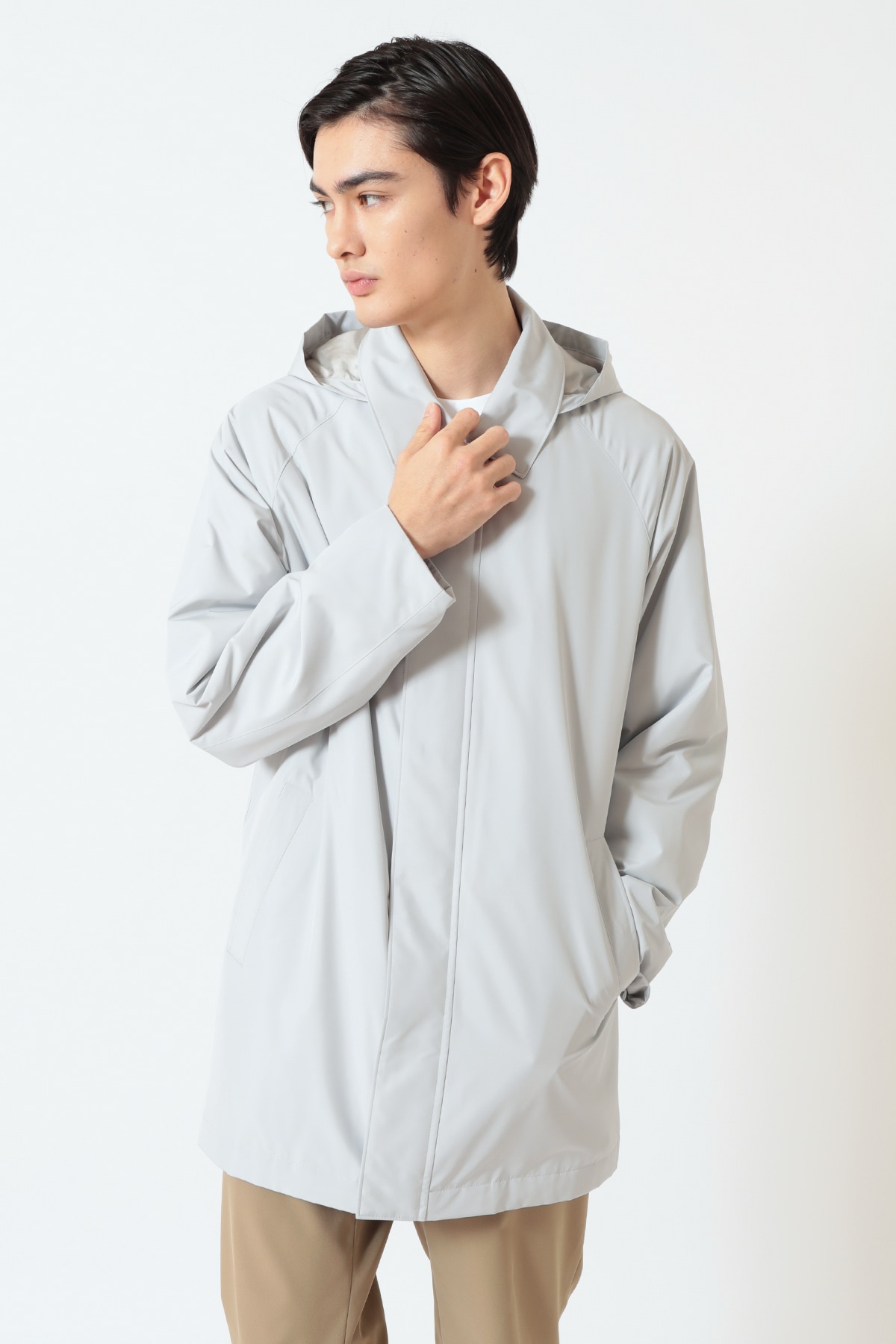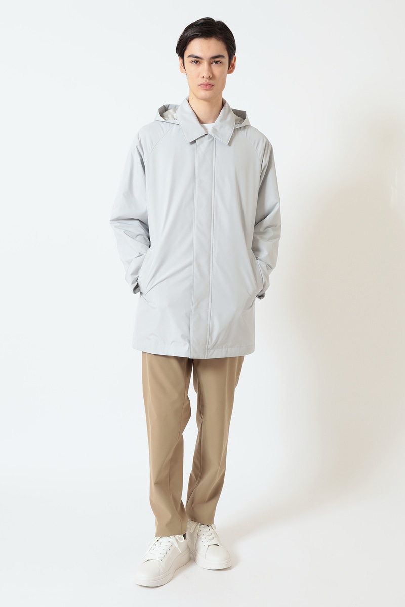 季節の変わり目に重宝する、機能性と品格を兼ね備えた軽量コートです。ベーシックなステンカラーのデザインは、スーツの上から羽織るビジネススタイルにも、休日のカジュアルスタイルにもマッチ。取り外し可能なフード付きで、シーンに合わせて着こなしを変えられます。春の旅行や出張にも最適な一着です。