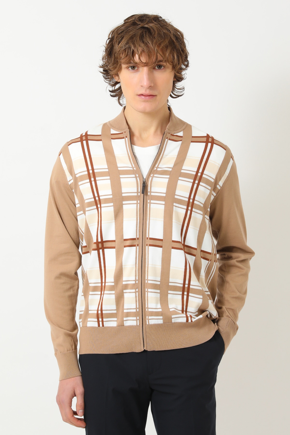 50周年チェック コンパクトコットン ジップセーターA62M163462