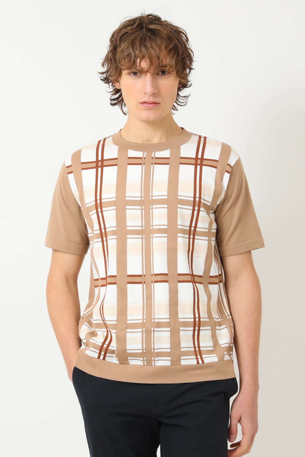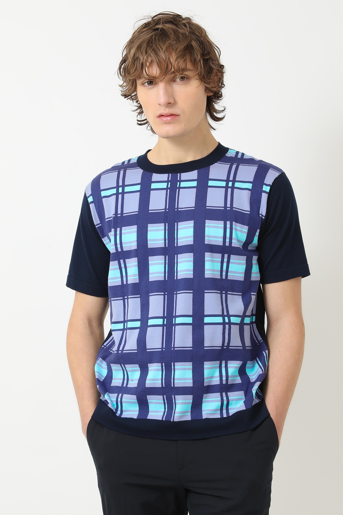 50周年チェック コンパクトコットン ニットA62M164462
