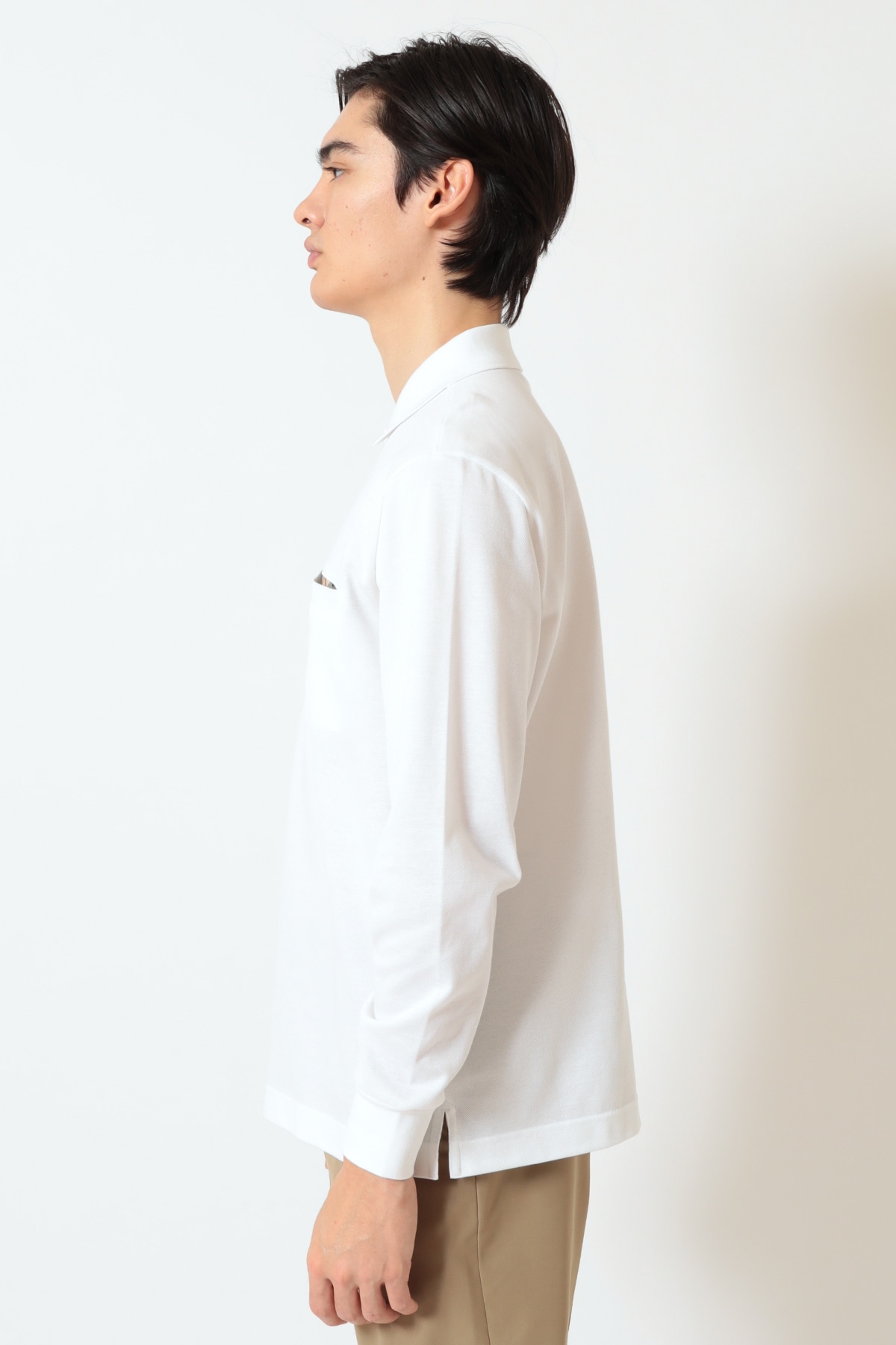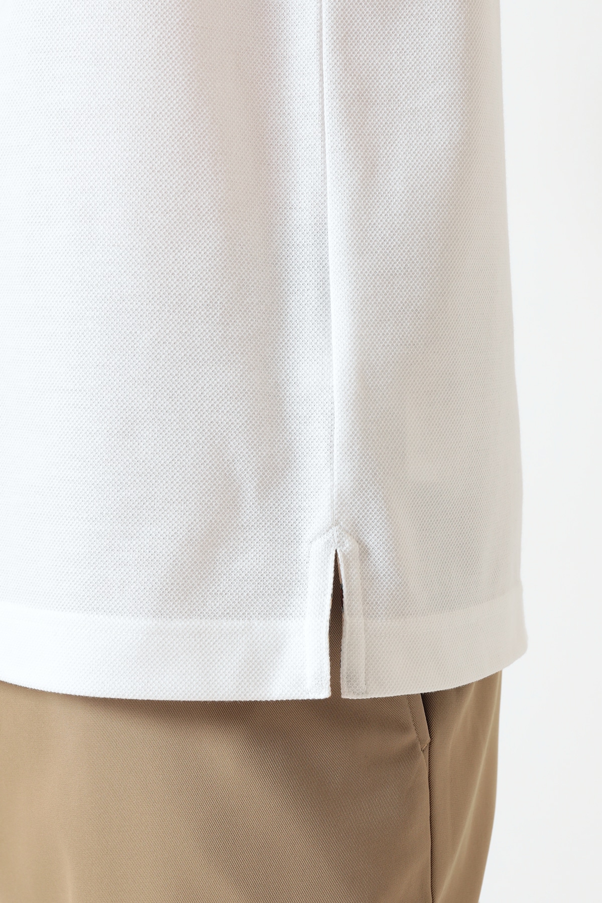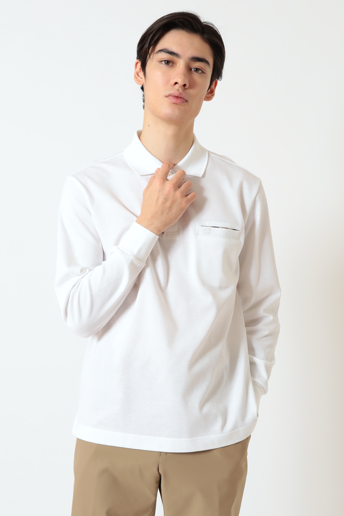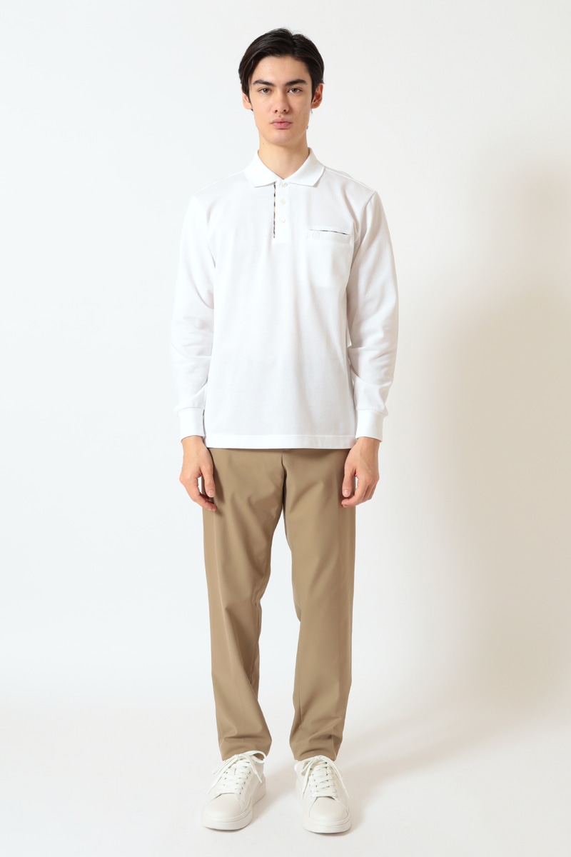 希少な超長綿(40/2)を使用した、DAKSオリジナルの表カノコ素材。一般的なポロシャツとは一線を画す、艶やかな光沢とカシミヤのようなソフトな風合いをお楽しみいただけます。