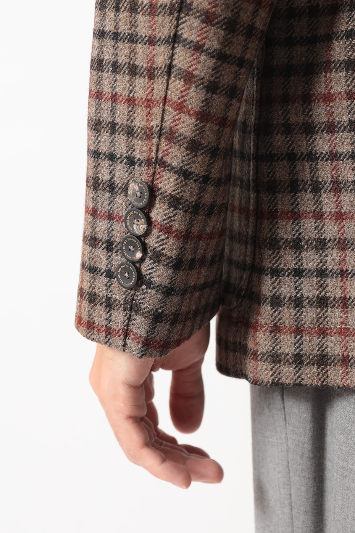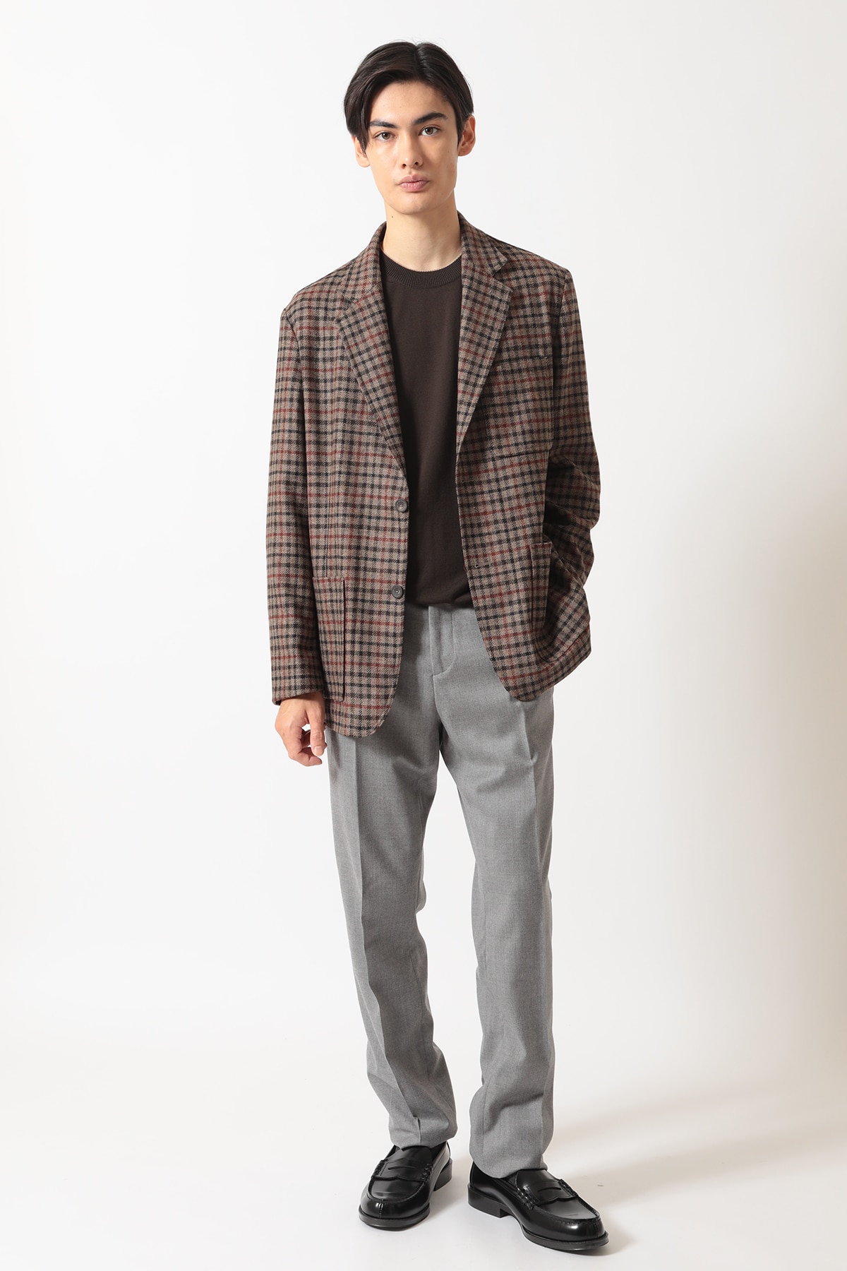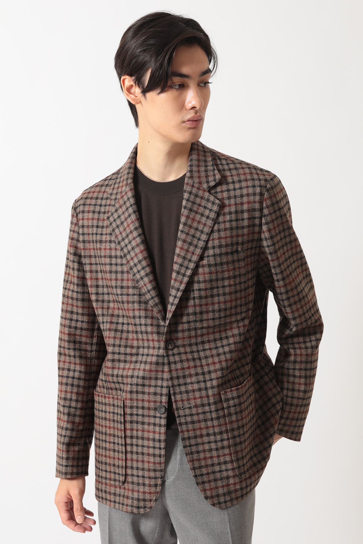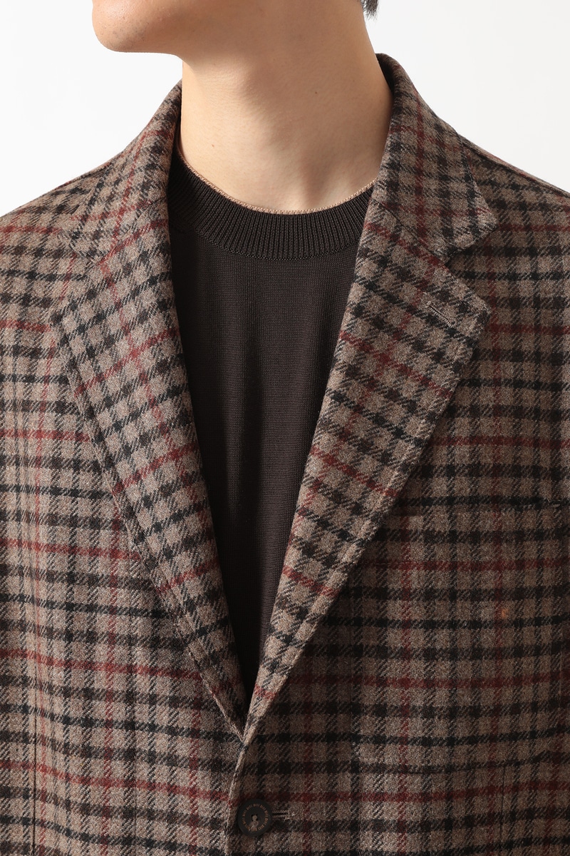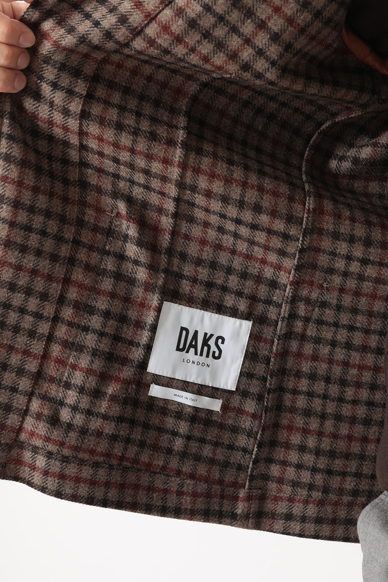 英国の老舗ミル、MOON(ムーン)社がDAKSのためだけに特別に織り上げた「ハウスツイード」を使用した、気品あるカジュアルブレザーです。デザインには、3つのパッチポケット、柔らかなノッチドラペル、2つボタンといったカジュアルなディテールを採用し、軽快な印象に仕上げました。快適な着用感を重視した半裏仕立てで、肩、身頃、袖はゆとりを持たせたリラックスフィットです。従来のクラシックなテーラードジャケットよりもやや短めの着丈と、ふっくらとしたツイードの風合いが相まって、スマートでありながらリラックス感のある絶妙なモダンシルエットを演出します。普段使いからビジネスカジュアルまで、幅広いシーンでDAKSらしい「スマートなゆとり」をお楽しみいただける