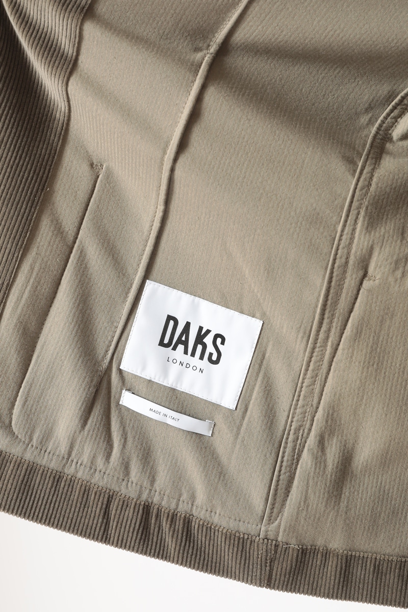 イタリアのドラゴ社が開発した、贅沢なコットンとウールを混紡したコーデュロイ生地で仕立てたカジュアルブレザーです。柔らかな肌触りと、リッチな光沢感が特徴です。3つのパッチポケット、柔らかなノッチドラペル、2つボタン留めといったディテールを採用。快適さと着やすさを追求した半裏仕様で、身頃、肩、袖にゆとりを持たせたリラックスフィットに仕上げています。従来のDAKSジャケットよりやや短めの着丈とふっくらとしたシルエットは、洗練された大人のカジュアルスタイルを演出します。