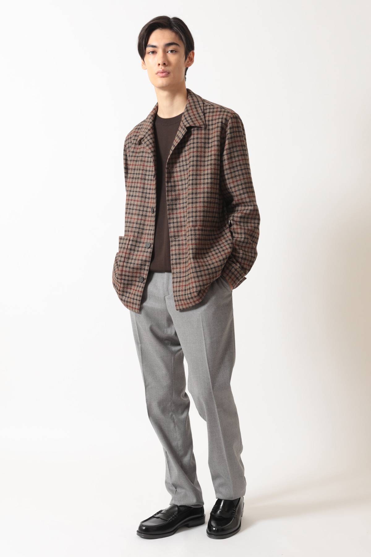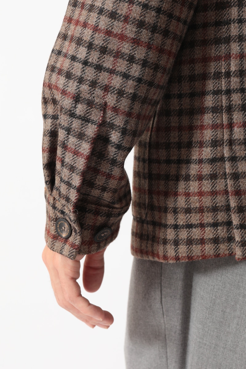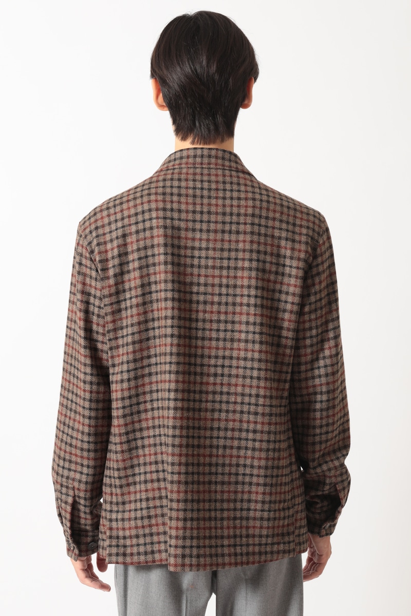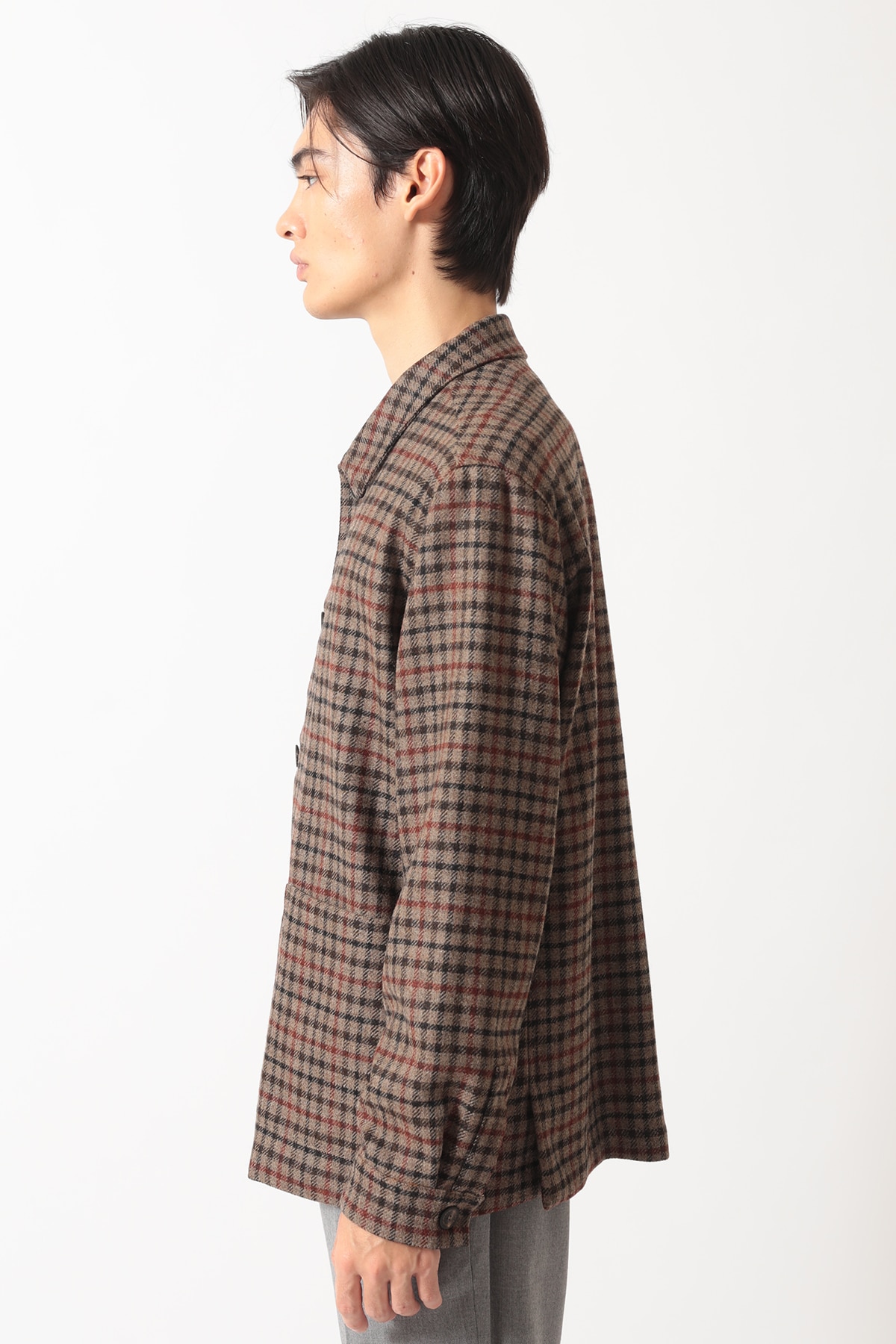 英国の老舗ミル、MOON(ムーン)社がDAKSのためだけに織り上げた「ハウスツイード」生地を使用した、モダンなテーラードオーバーシャツです。ワークウェアの要素を取り入れた2つのパッチポケット、5つボタンの前立て、ワンピースカラー、ボタン付きカフスといったディテールが特徴。ツイードの持つ品格とカジュアルなデザインが融合し、洗練された印象を与えます。快適な着心地を叶える半裏仕様と、すっきりとしたモダンなシルエットが、カジュアルウェアとテーラードジャケットのギャップを埋める、スマートな一着です。アウターとしてもシャツとしても、幅広い着こなしをお楽しみいただけます。