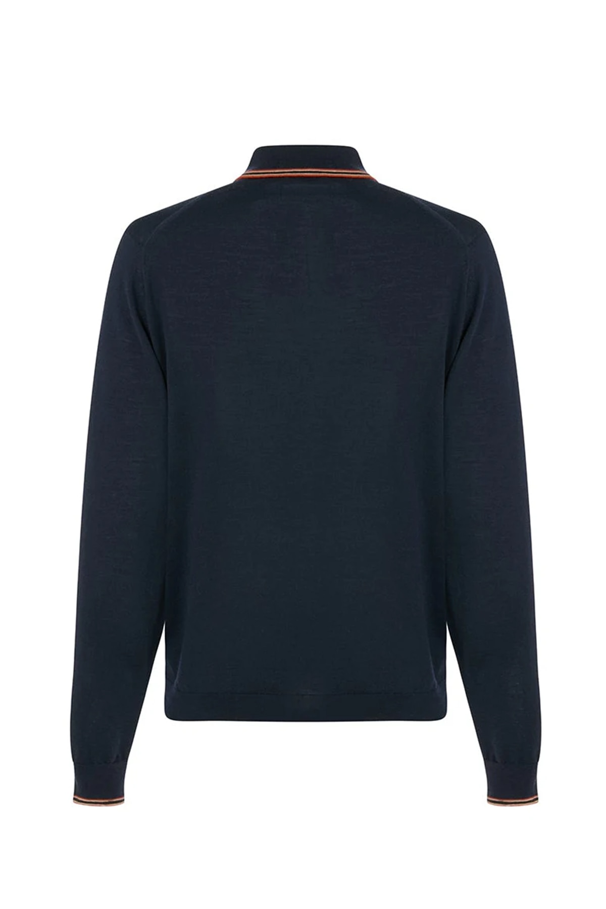 30ゲージ・エクストラファインメリノウールを用いた長袖ポロ。襟と袖リブに配したハウスストライプがさりげないブランドサインになり、スリムフィット設計でシャツ感覚のスマートな着こなしが可能です。