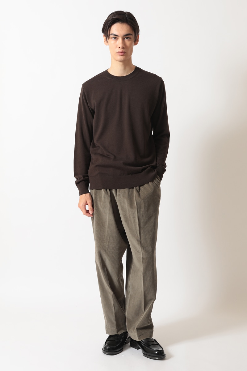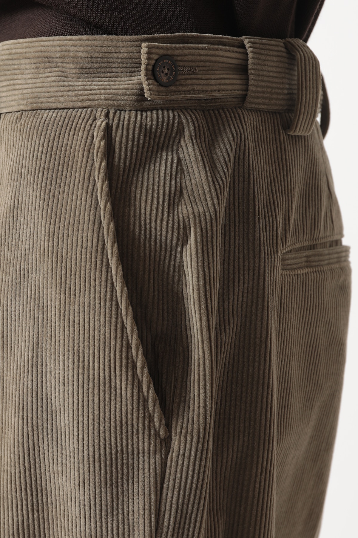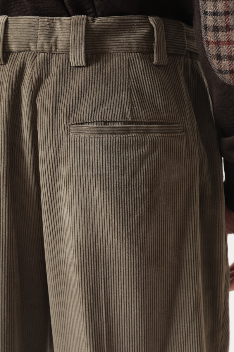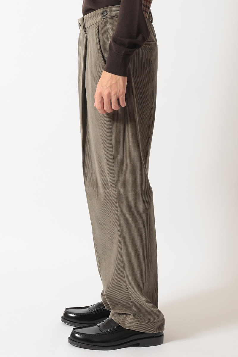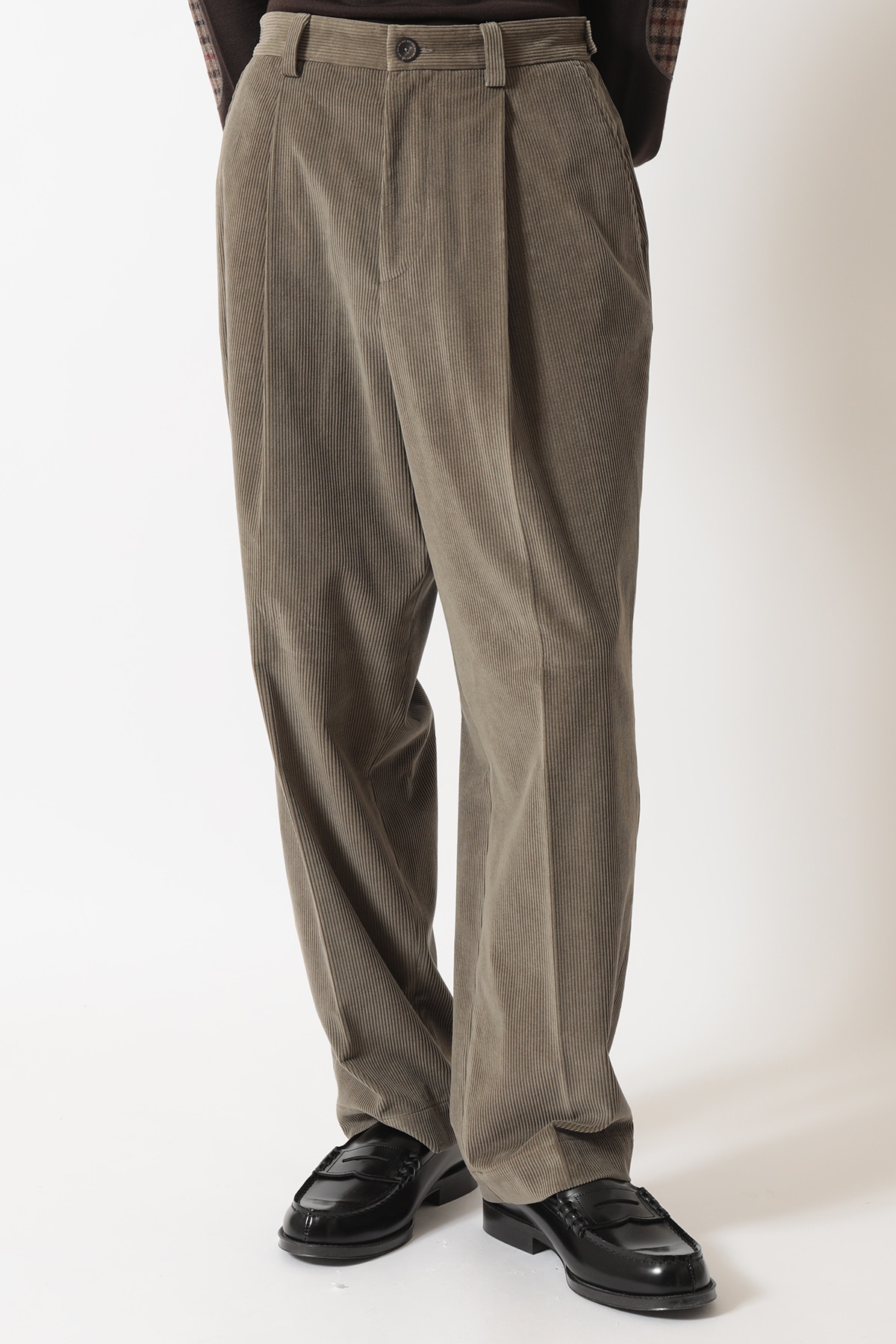 ソフトコーデュロイ ワイドレッグ ディーププリーツパンツ
