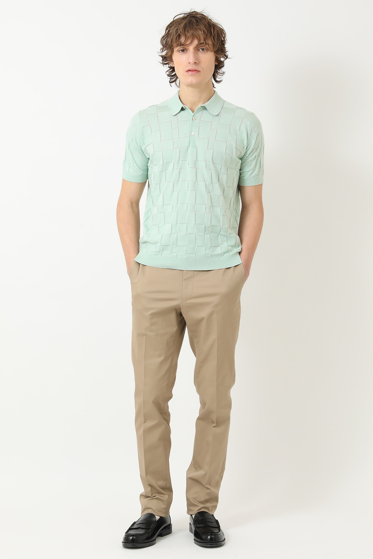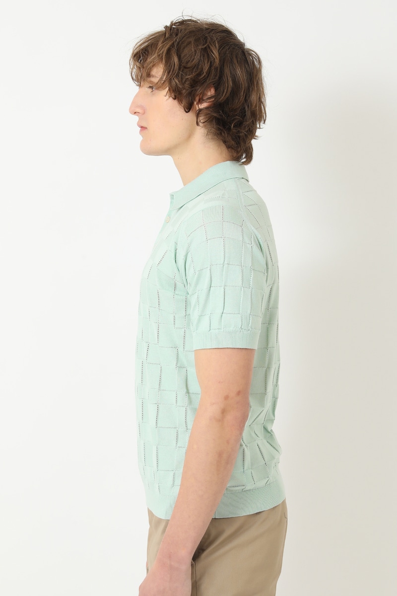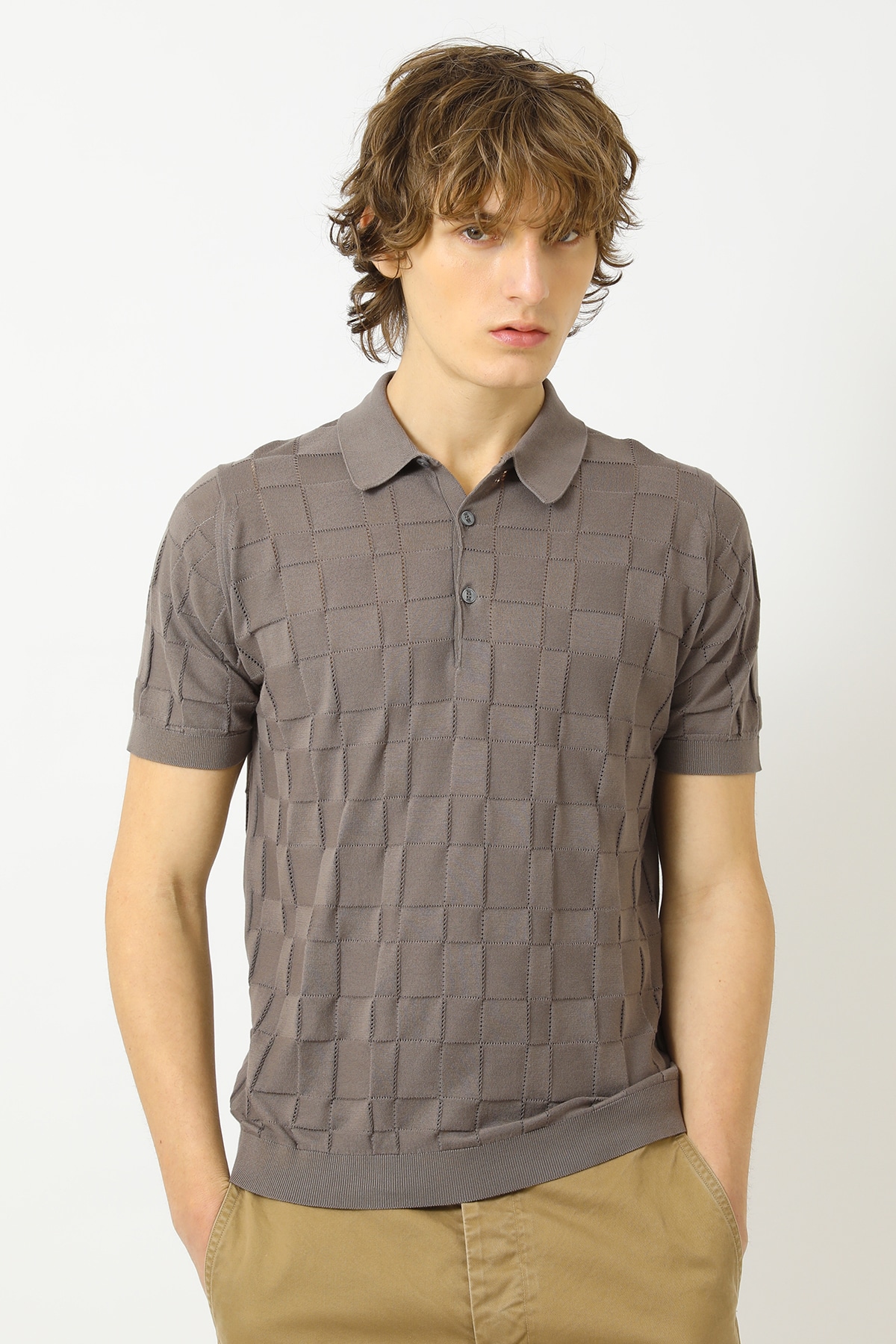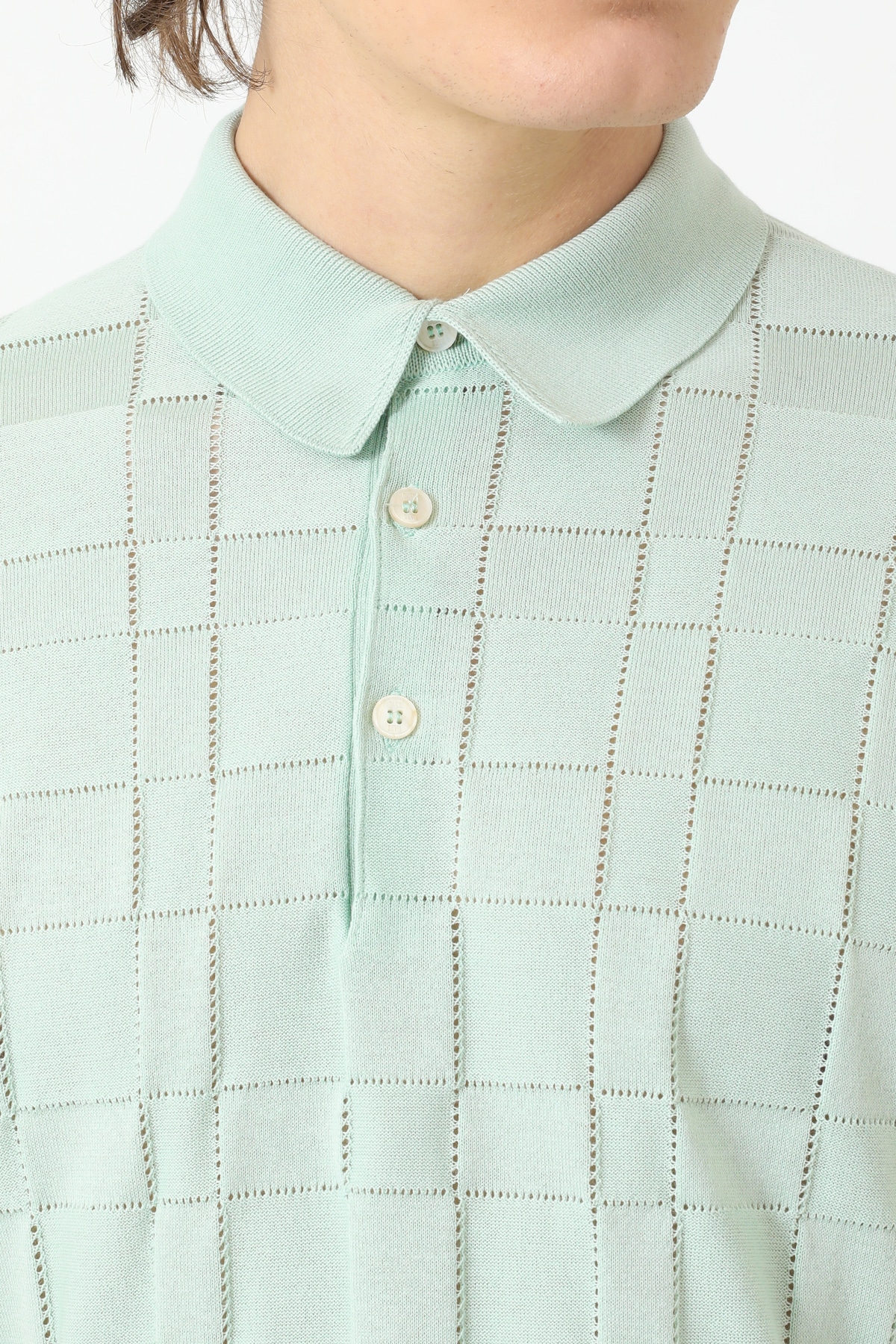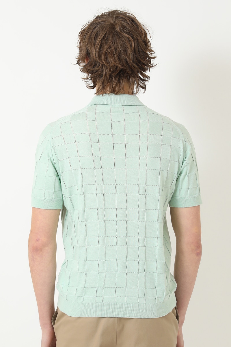 JOHN SMEDLEY FOR DAKSコットン アイレットチェック襟付き半袖ニットB62M160004