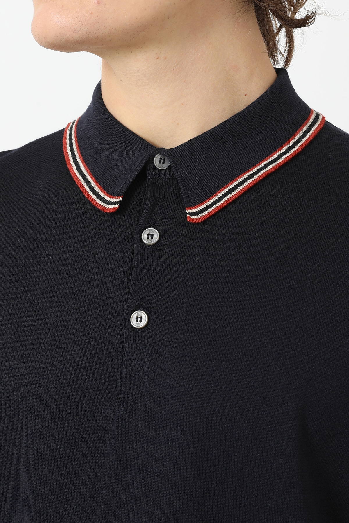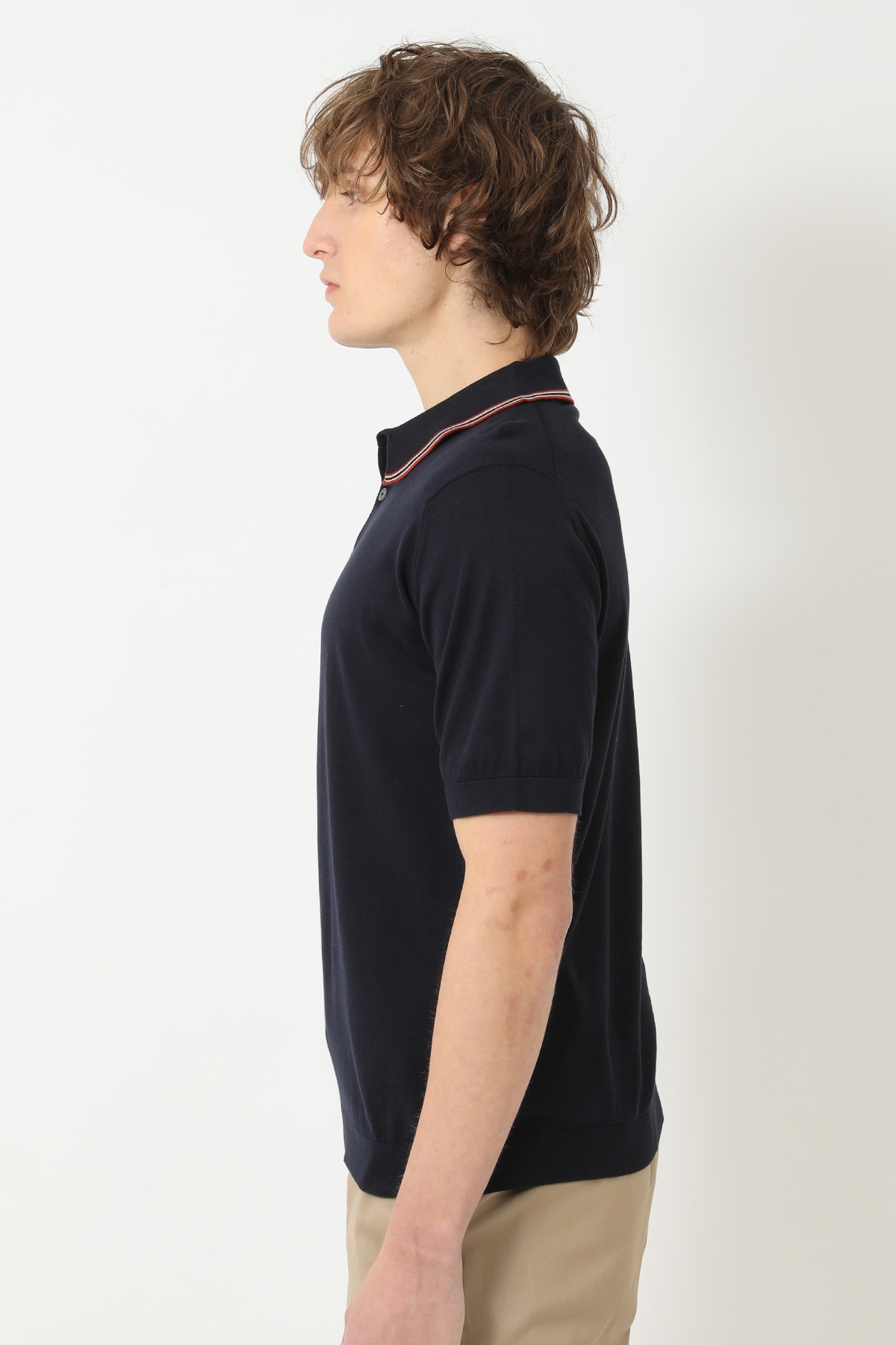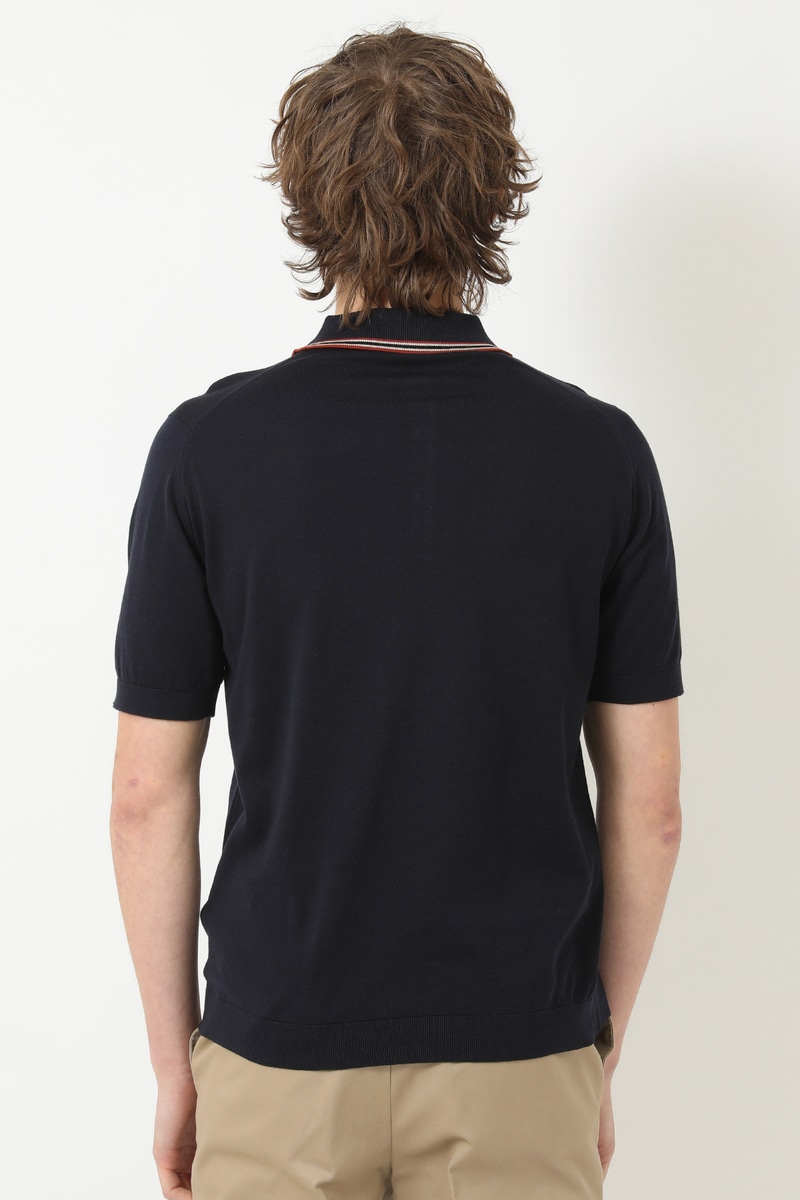 JOHN SMEDLEY FOR DAKSコットン 配色ライン半袖ポロニットB62M160005