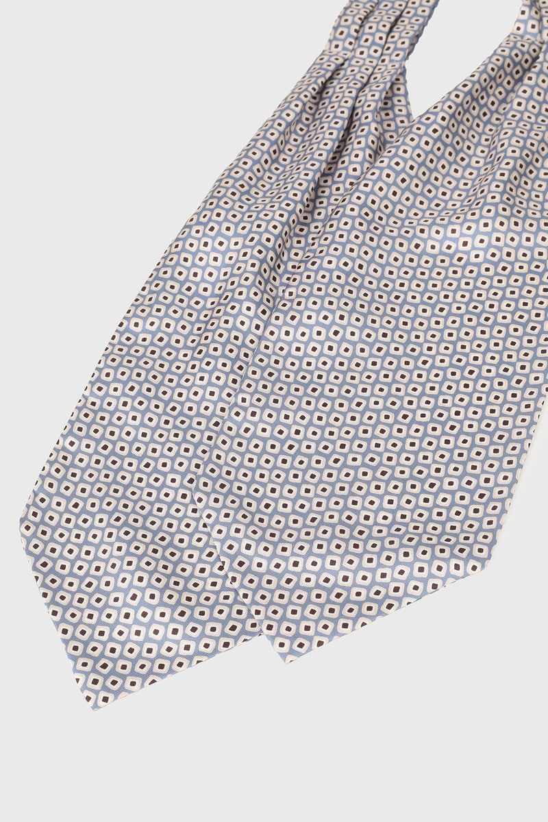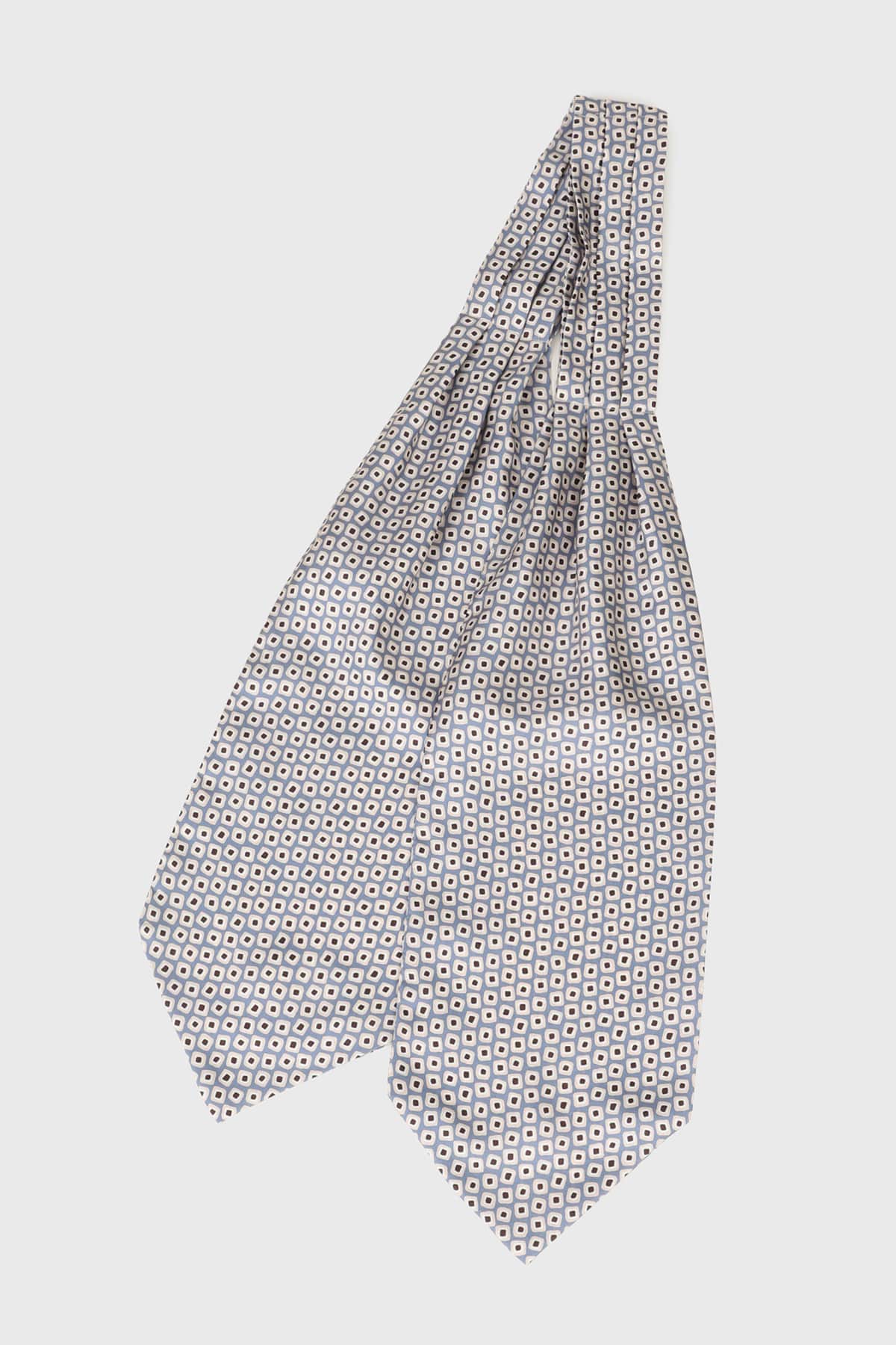 装いに英国らしい品格と華やかさを添える、イタリア製のシルクアスコットタイ。シルク100%ならではの滑らかな光沢と柔らかな肌触りが、首元を優雅に彩ります。クラシックでありながらも、現代のドレスアップシーンにふさわしい洗練された表情に仕上げました。