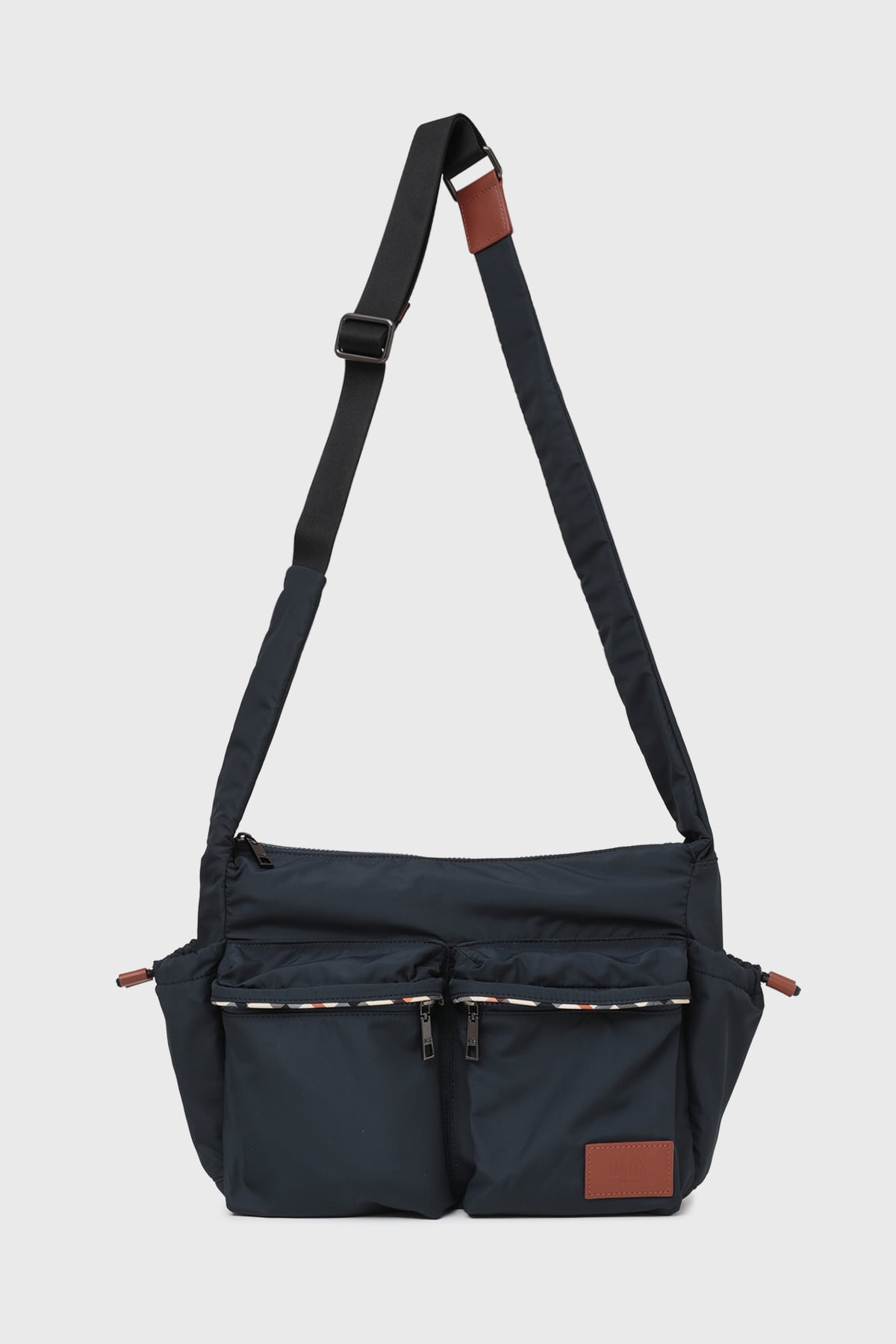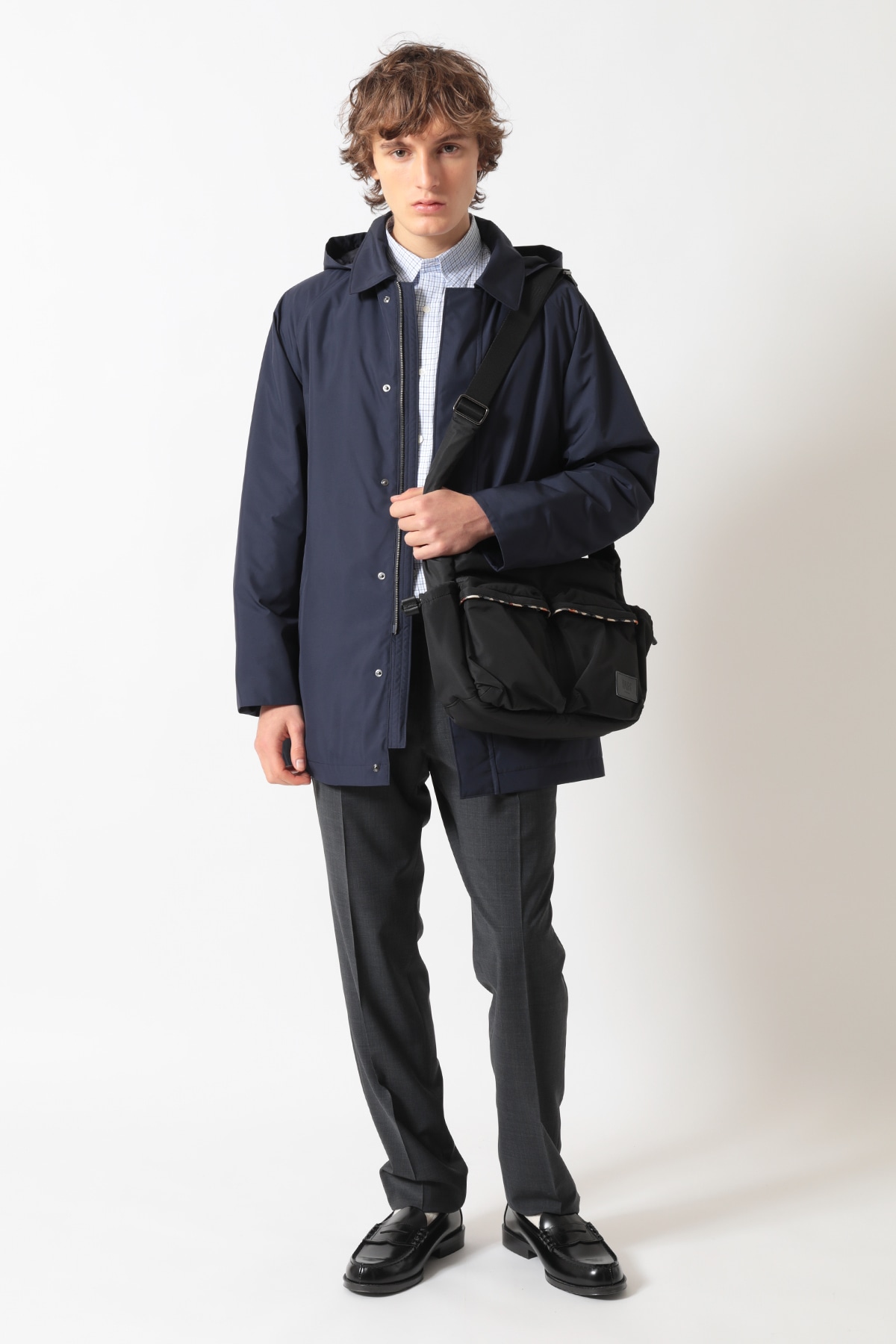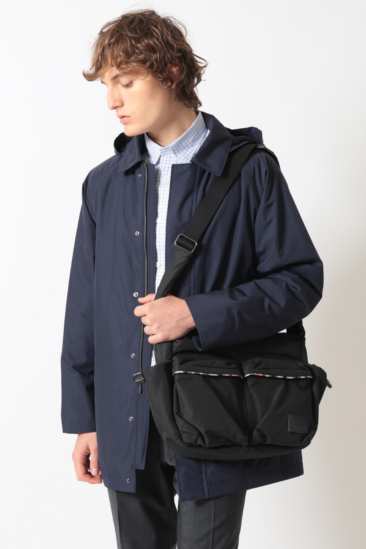 デイリーユースからトラベルまで幅広く活躍する、軽量なナイロン素材を使用したショルダーバッグ。メインファブリックにはタフで扱いやすいナイロンを採用し、フラップの縁取りやハンドル部分に上質な牛革をあしらうことで、カジュアルすぎない大人の品格を表現しました。サイドポケットや内側にさりげなく配されたハウスチェック柄が、DAKSらしい英国の伝統を感じさせるアクセントになっています。