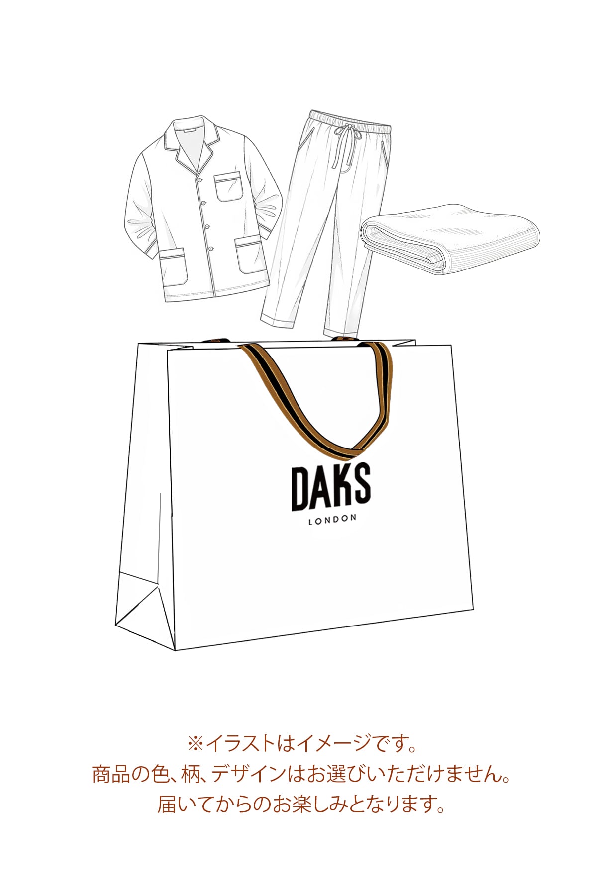 この特別なセットには、DAKSのメンズパジャマ(Lサイズ)1組とフェイスタオル2枚の計3点が入って、大変お得な10,000円(税抜)でお求めいただけます。